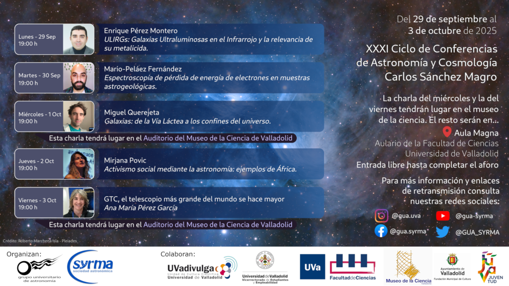 Ana MarÃa Pérez GarcÃa, doctora en astrofÃsica especializada en evolución de galaxias, tanto en campo como en cúmulo y en particular en núcleos activos de galaxias, será la encargada de impartir esta conferencia.